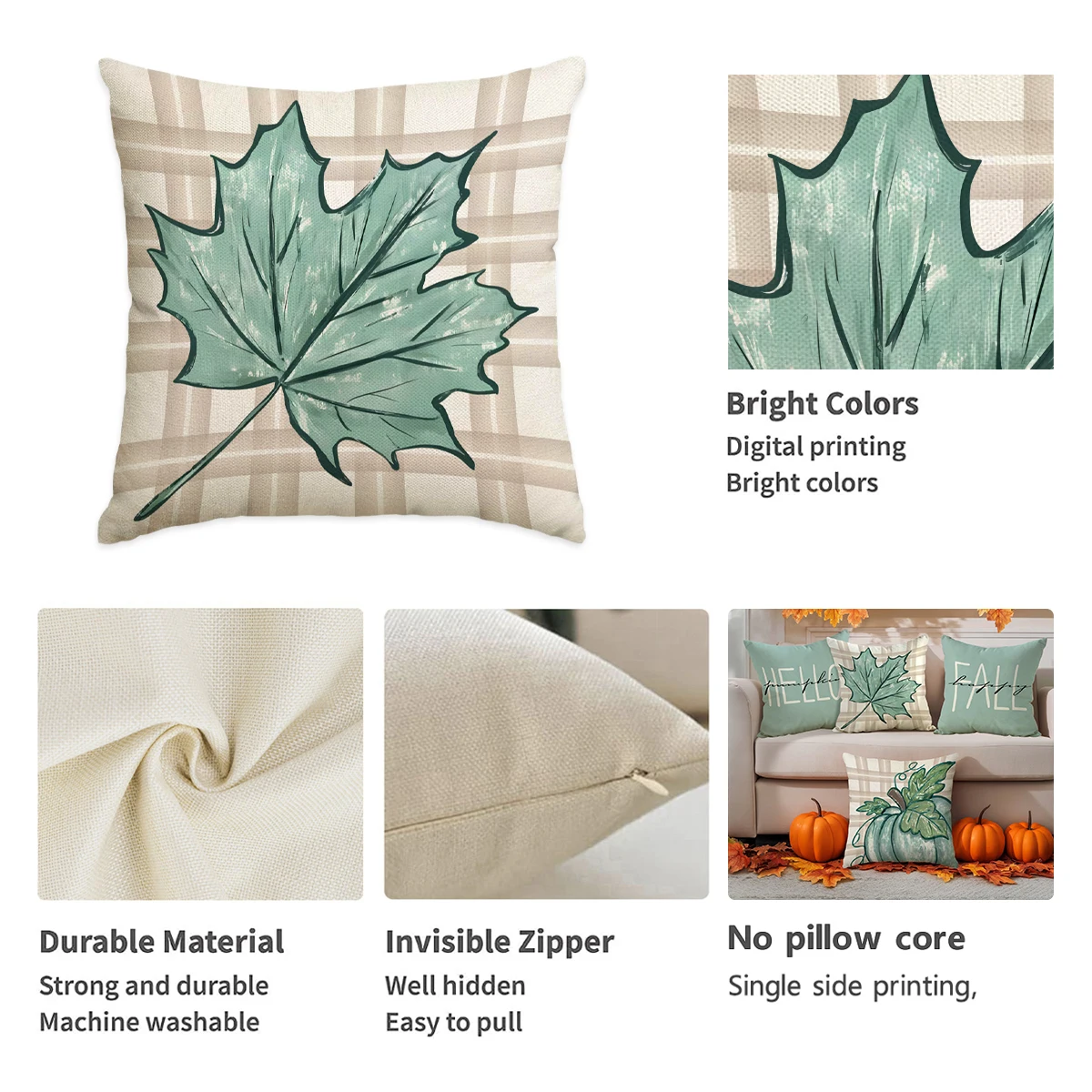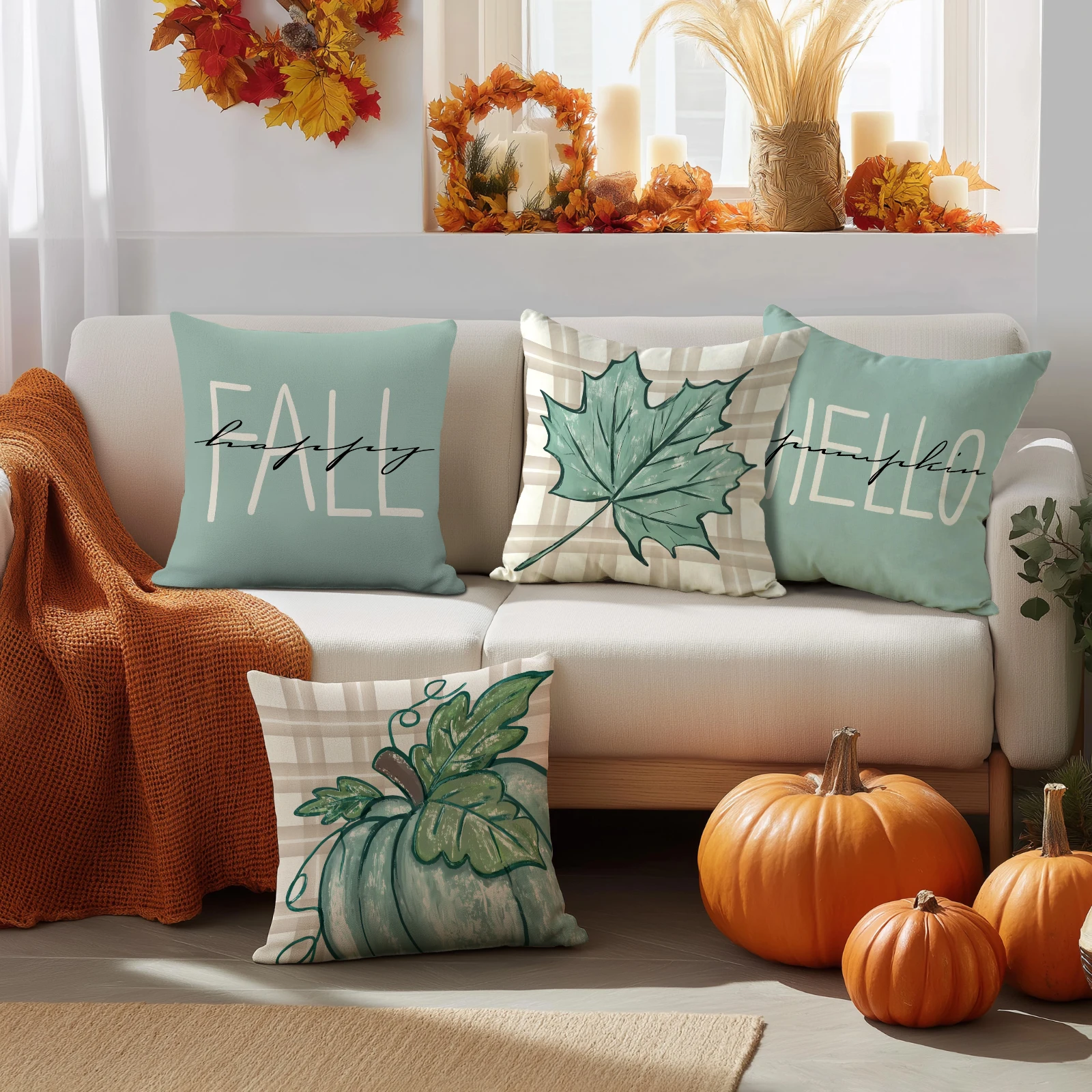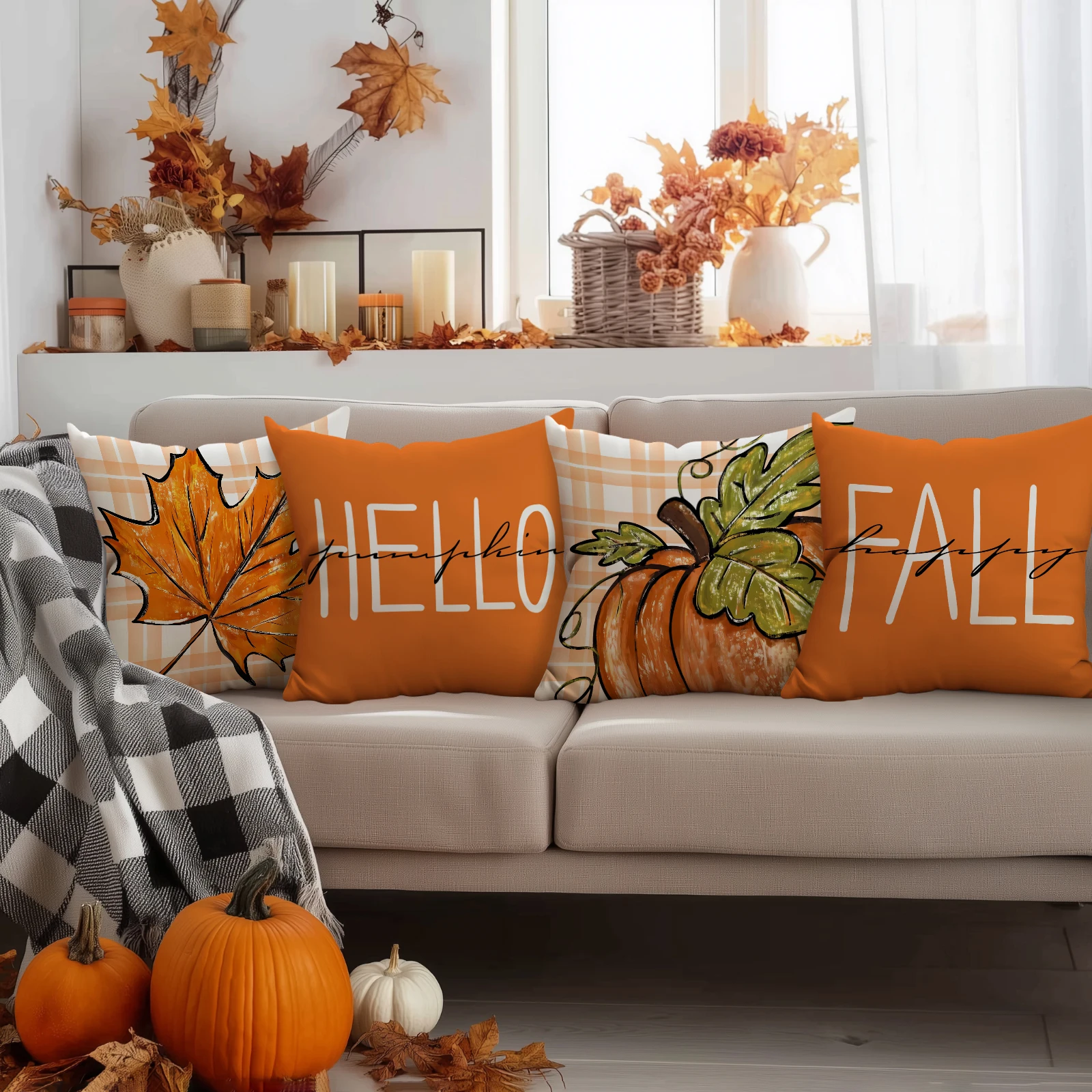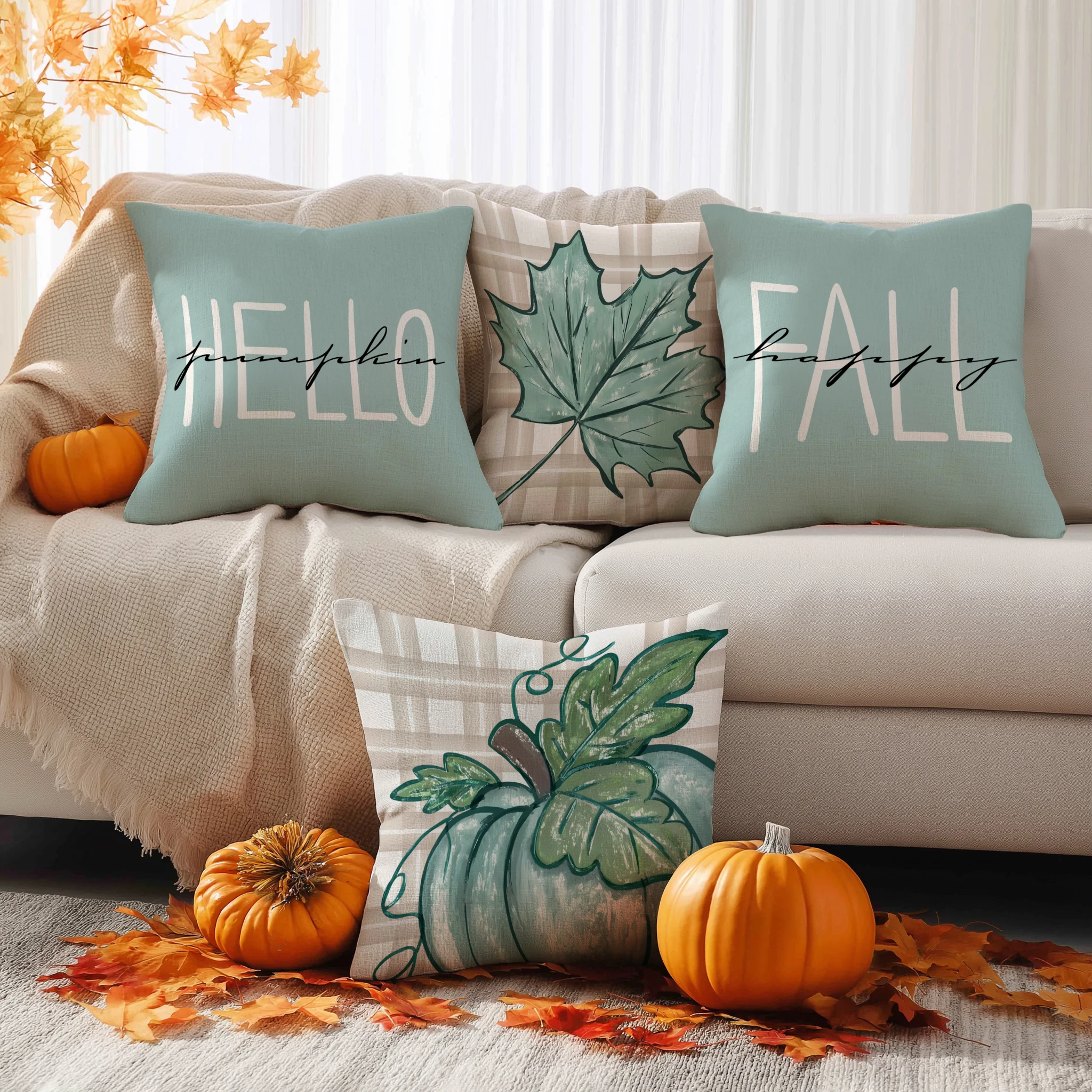 4pcs Thanksgiving Pillow Cover, Pumpkin, Maple Leaf, Stripe Pattern Cushion Cover, Hello Autumn Home Decoration Pillowcase